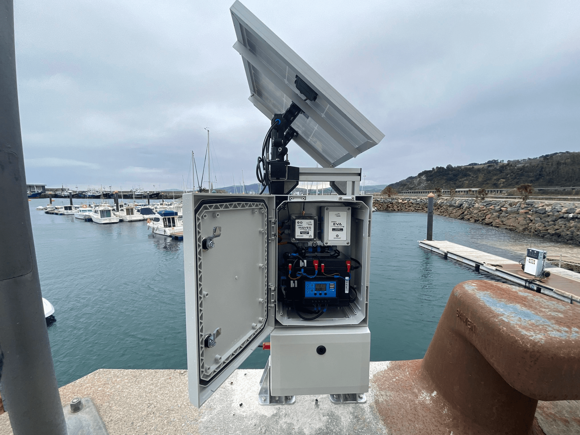 Su instalación en líneas de atraque y amarre, muelles o diques es totalmente desatendida y autónoma gracias a que integra un sistema de posicionamiento GNSS de alta precisión para una correcta referenciación del equipo. Comunicaciones inalámbricas multitecnología (4G, LoraWAN, Wifi, SigFox) que permite el envío de datos automático desde el momento que el equipo es alimentado. Dispone además de un sistema de alimentación y control energético que permite su autonomía energética y disponibilidad del dato.