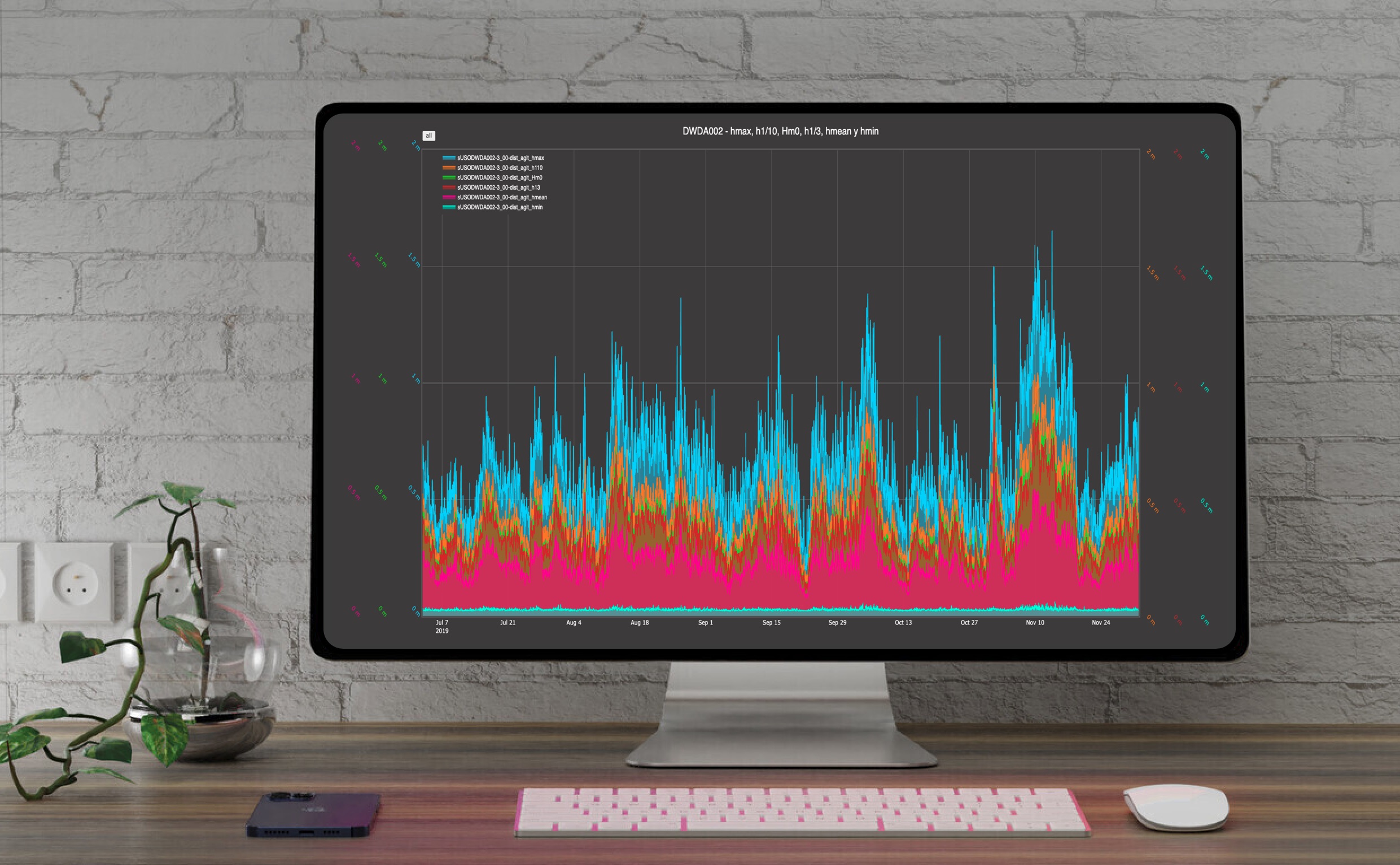 Ponemos a disposición de nuestros clientes un sistema operacional para el almacenamiento, análisis y puesta en valor del dato. Ya sea información meteo-oceánica generada por nuestros equipos IoT y redes sensoriales, como de cualquier fuente de información útil para el usuario. Ha sido implantada exitosamente en laboratorios experimentales y en la monitorización ambiental y portuaria.