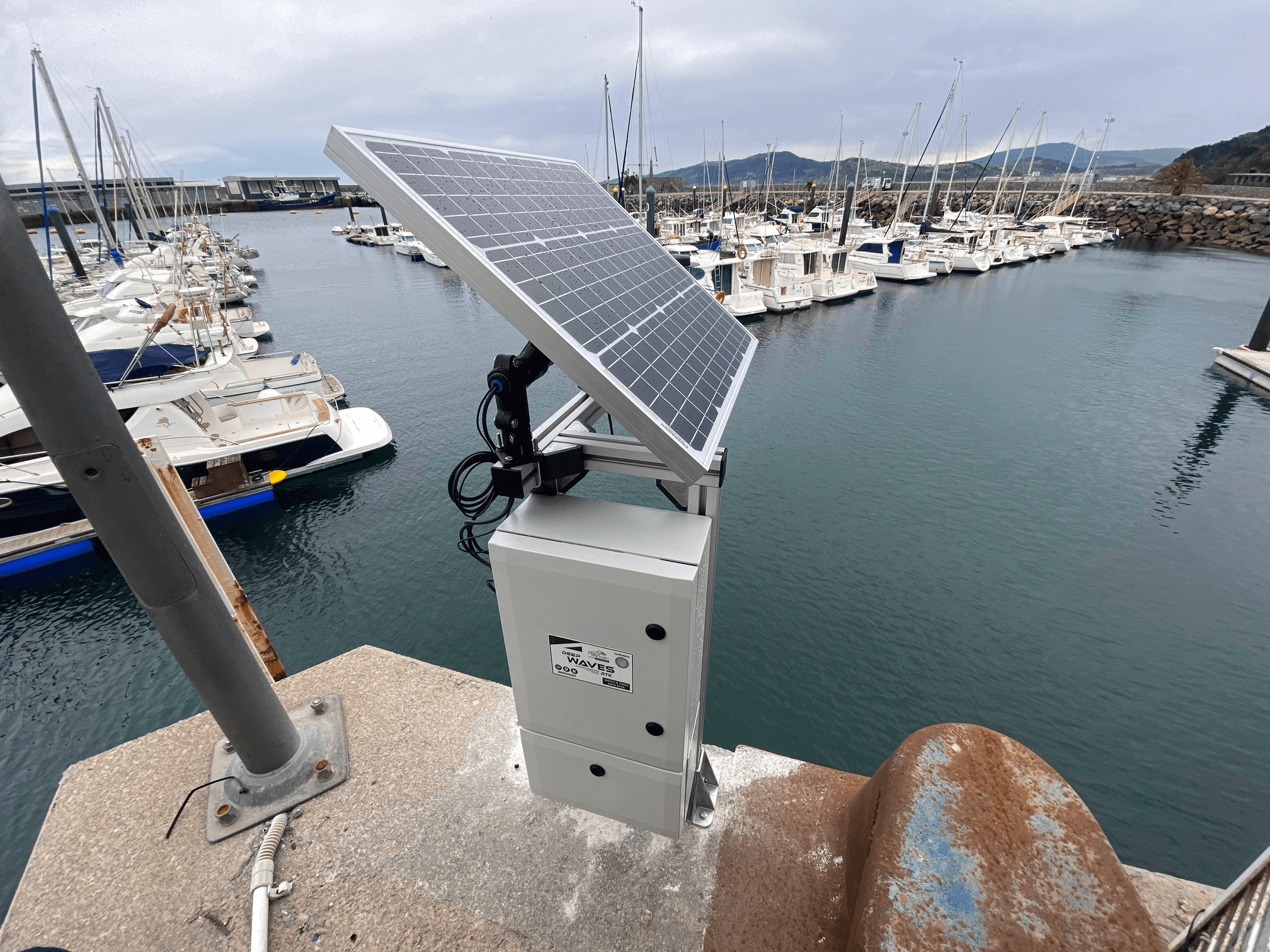 Su instalación en líneas de atraque y amarre, muelles o diques es totalmente desatendida y autónoma gracias a que integra un sistema de posicionamiento GNSS de alta precisión para una correcta referenciación del equipo. Comunicaciones inalámbricas multitecnología (4G, LoraWAN, Wifi, SigFox) que permite el envío de datos automático desde el momento que el equipo es alimentado. Dispone además de un sistema de alimentación y control energético que permite su autonomía energética y disponibilidad del dato.